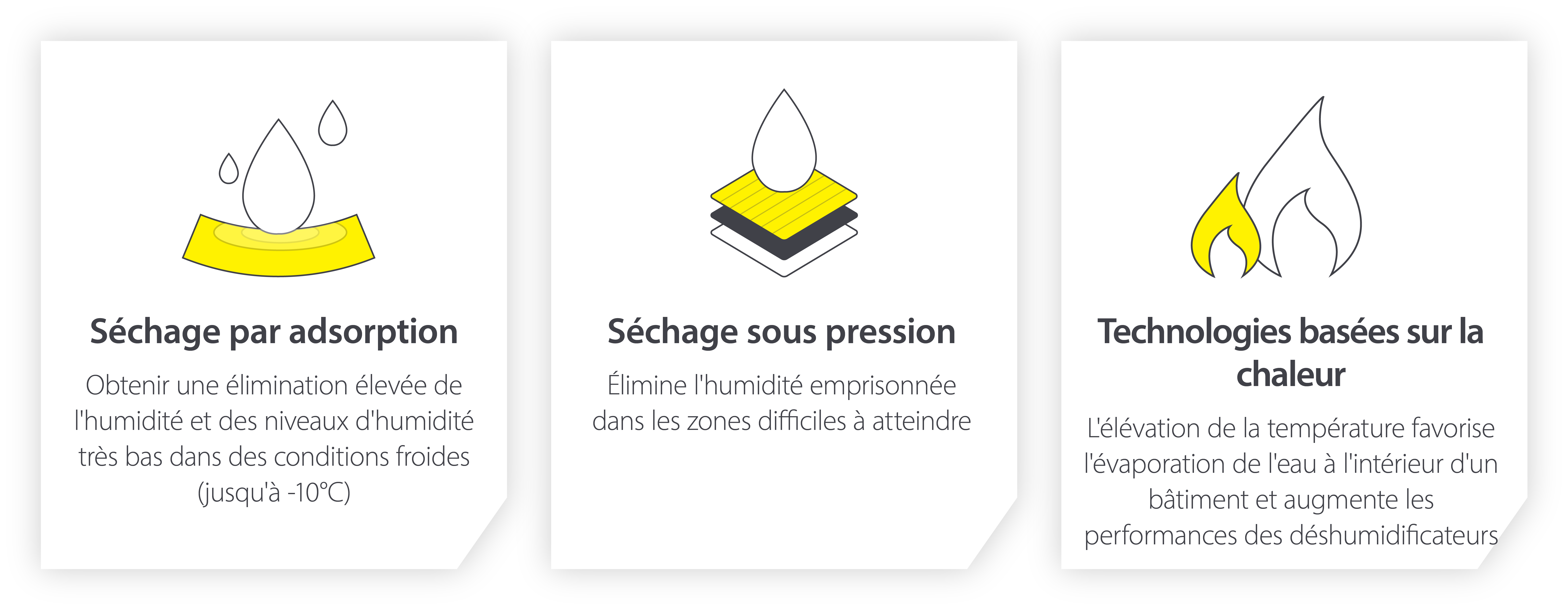 Ce processus de séchage plus progressif est une méthode douce et bien réfléchie pour éliminer l’humidité de l’air ambiant et de la structure d’un bâtiment.